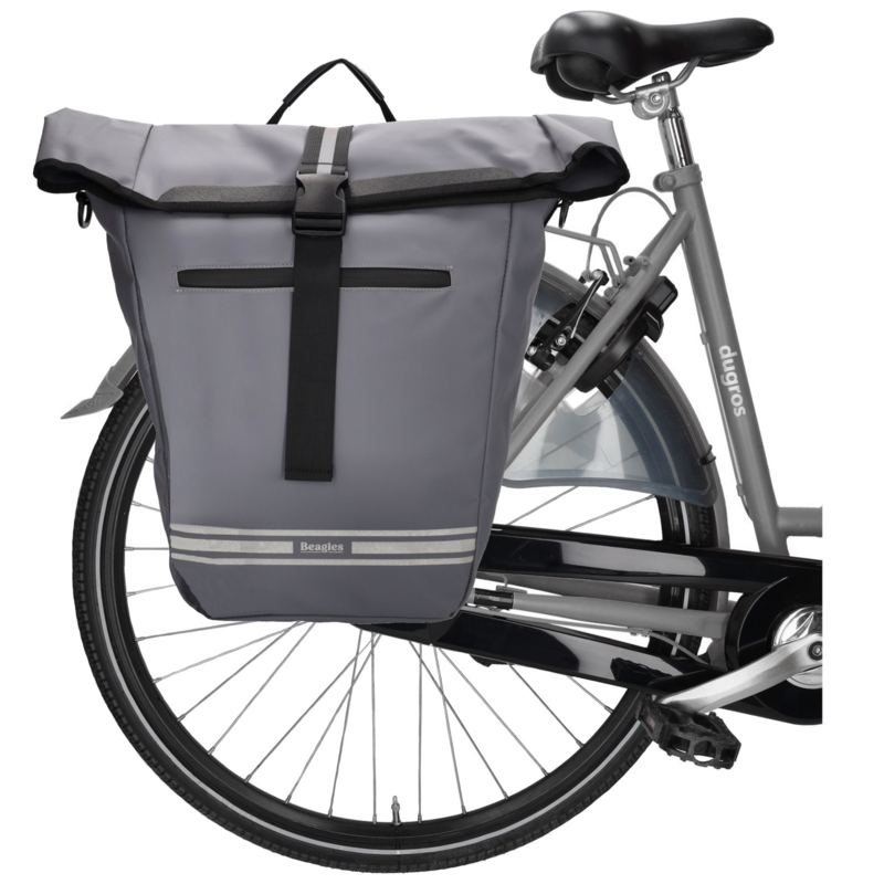 De Beagles Bicycle Originals Fietstas is een handige en multifunctionele tas die je zowel als fietstas en als schoudertas kunt gebruiken. Dankzij de afneembare en verstelbare schouderband wissel je eenvoudig tussen dragen op de fiets en over de schouder. Binnenin bevindt zich een uitneembaar laptopvak geschikt voor een 15,6 inch laptop, waardoor je je laptop veilig en georganiseerd kunt meenemen. Daarnaast heeft de tas een extra ritsvak aan de binnenkant en een ruim ritsvak aan de voorkant voor kleinere spullen. De tas sluit eenvoudig en snel met klittenband, zodat je spullen goed opgeborgen blijven. Een ideale tas voor woon-werkverkeer, school of een dagje uit, met de flexibiliteit om hem te gebruiken zoals jij dat wilt.