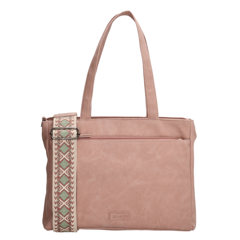 Met deze shopper steel jij de show! Deze prachtige shopper komt uit de Malaga serie van Beagles. Door het strakke design valt die overal mee te combineren. De schouderband heeft een leuk patroon wat de tas een speelse look geeft. Je spullen neem je bovendien geordend met je mee in de meerdere vakken die de tas te bieden heeft. Je shopt de shopper in vrolijke, zachte kleuren. Waar neem jij deze shopper mee naar toe?