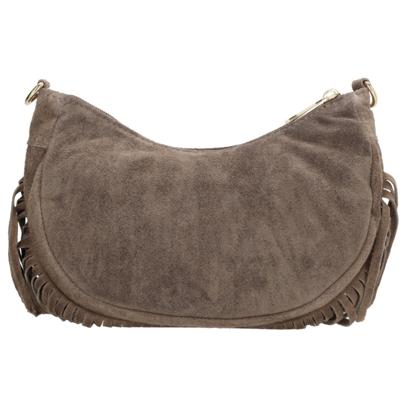 De Charm London Elisa Schoudertas is een trendy crossbody tas van suède met speelse franjes en stijlvolle gouden details. De tas heeft een compacte vorm en is perfect voor een dagje uit of een avondje weg. De tas sluit bovenaan met een rits, en binnenin zit een extra ritsvak om kleine spullen veilig op te bergen. De verstelbare en afneembare schouderband zorgt ervoor dat je de tas comfortabel crossbody of over de schouder kunt dragen, helemaal naar wens. De franjes en gouden hardware geven deze tas een bohemian en vrouwelijke uitstraling die elke outfit net dat beetje extra geeft.