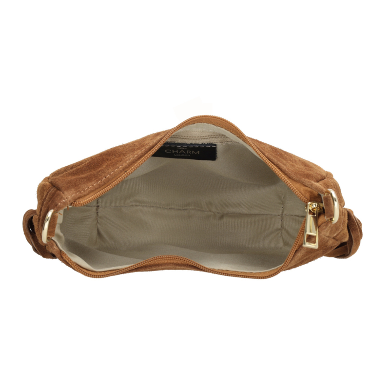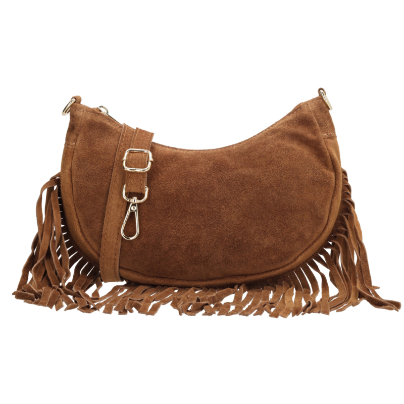 De Charm London Elisa Schoudertas is een trendy crossbody tas van suède met speelse franjes en stijlvolle gouden details. De tas heeft een compacte vorm en is perfect voor een dagje uit of een avondje weg. De tas sluit bovenaan met een rits, en binnenin zit een extra ritsvak om kleine spullen veilig op te bergen. De verstelbare en afneembare schouderband zorgt ervoor dat je de tas comfortabel crossbody of over de schouder kunt dragen, helemaal naar wens. De franjes en gouden hardware geven deze tas een bohemian en vrouwelijke uitstraling die elke outfit net dat beetje extra geeft.