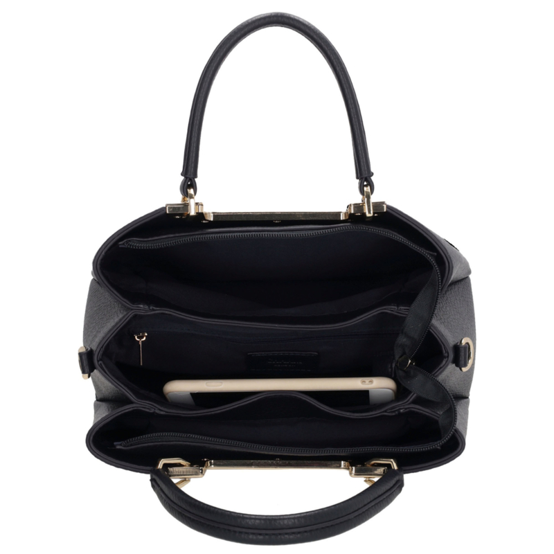 De Charm London Lucca handtas is een klassieke en praktische tas die perfect past bij elke gelegenheid. Met drie hoofdvakken die samen sluiten met één hoofdrits, biedt de tas overzicht en ruimte voor je dagelijkse essentials. Binnenin zit een handig telefoonvak en een extra ritsvak voor kleinere spullen. Dankzij de lange, afneembare en verstelbare schouderband draag je de tas zowel stijlvol in de hand als comfortabel over de schouder of crossbody.