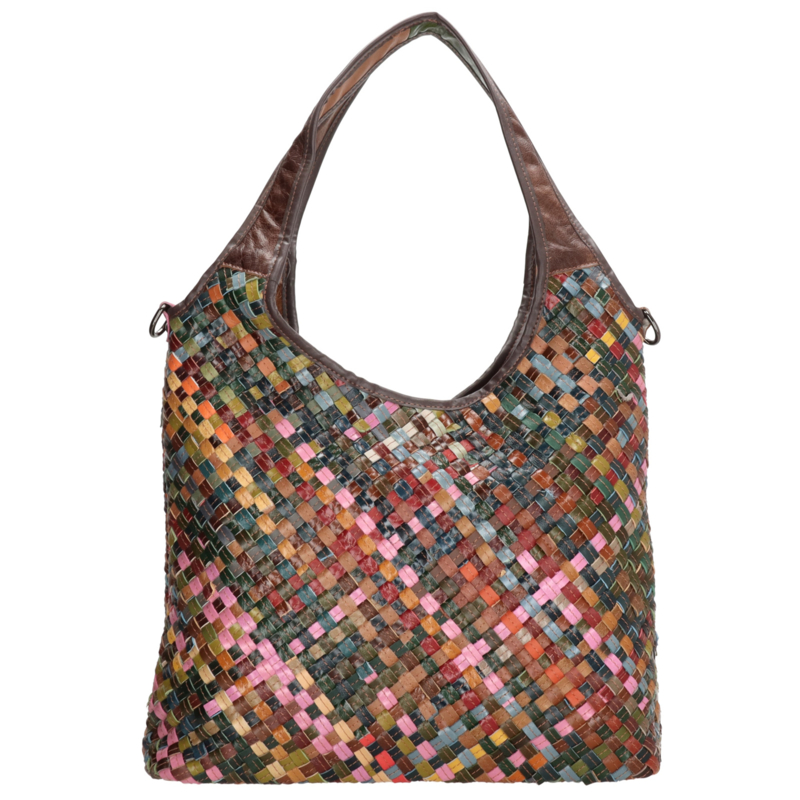 Deze leren shopper is een stijlvolle en ruime tas, uitgevoerd in gevlochten multikleurig leer. Deze shopper heeft een speelse en unieke uitstraling en biedt voldoende ruimte voor al je dagelijkse benodigdheden. Ideaal voor een dagje winkelen, werk of onderweg. De tas sluit met een hoofdrits en heeft een overzichtelijke indeling. Binnenin vind je een ruim hoofdvak met een telefoonvak en een ritsvak voor kleinere items. De tas is voorzien van twee handvatten, waardoor je deze comfortabel over de schouder of in de hand draagt. Daarnaast beschikt de tas over een verstelbare en afneembare schouderband voor extra draagmogelijkheden.