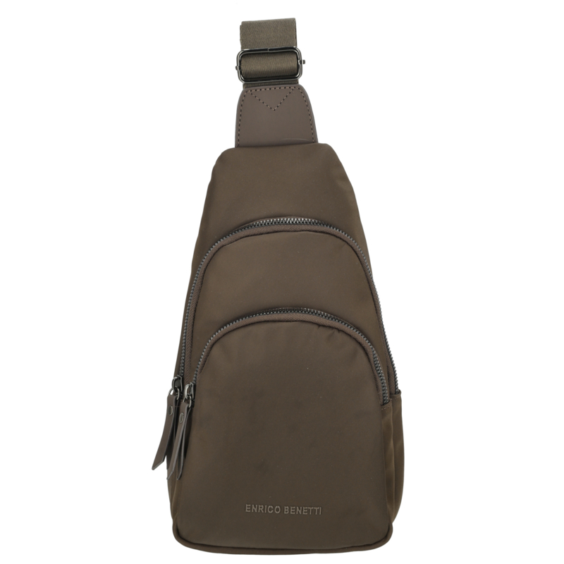 Handig. Stijlvol. Stoer. Uniek. Deze nylon rug/crossbodytas van Enrico Benetti past bij iedereen en bij al je outfits. Met de verstelbare schouderband kun je 'm over je schouder crossbody dragen op je rug of op je borst. Dit geeft een super leuk effect en je handen zijn vrij! Deze tas heeft twee hoofdvakken. Hierin zitten verschillende insteekvakken. De kleine dingen die je absoluut niet kwijt mag raken draag je het dichts op je rug, in het achtervak met ritssluiting. Deze rugtas mag dan wel klein zijn, maar bevat genoeg ruimte voor jouw spullen! Bovendien is de schouderband afneem en verstelbaar voor het juiste draagcomfort, je kunt de schouderband zowel rechts als links bevestigen.